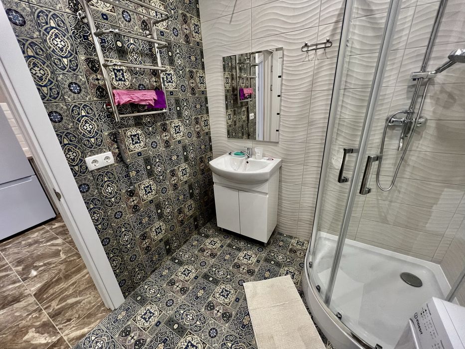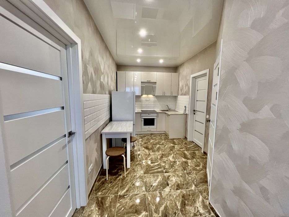 У квартирі є холодильник, пральна машина, бойлер, індукційна плита, духова шафа, шкаф-купе, диван розкладний, ліжко, кухня встроєна та стіл зі стільцями, ванна кімната обладнана також полотенцесушаркою.