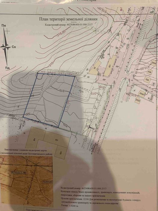 Продається Ділянка; Продається земельна ділянка з усіма документами і проектом під будівництво . Нове будівництвостанції технічного обслуговування з адміністративним та складськими приміщенями . Є можливість докупити ще 50 соток; кадастровий номер: 4623686400;01;006;2117