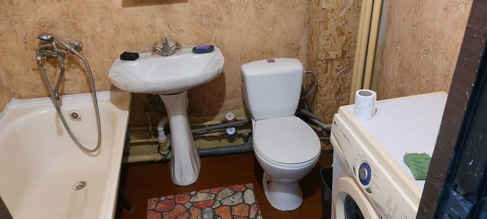 Есть вся необходимая техника: холодильник, стиральная машина, микроволновка, газовая плита, телевизор.