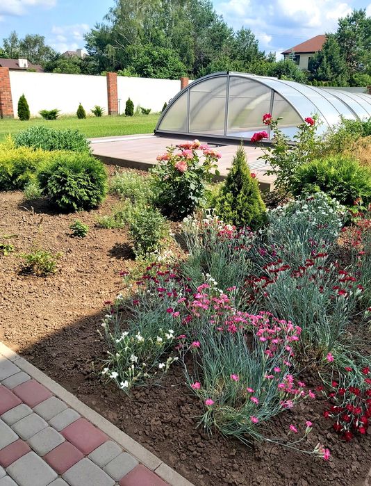 Капитальный забор по всему периметру участка, хвойники, цветы, огород, автополив...