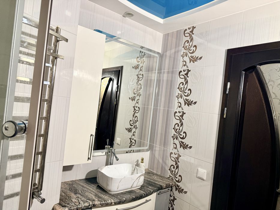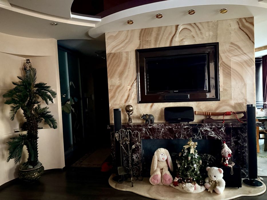 В інтер’єрі використані натуральний мармур та онікс, які одразу підкреслюють статус і смак власника. Багато елементів виконані вручну, що робить квартиру по-справжньому унікальною — такої другої просто не існує. Це не масовий ремонт, а індивідуальна робота для себе.