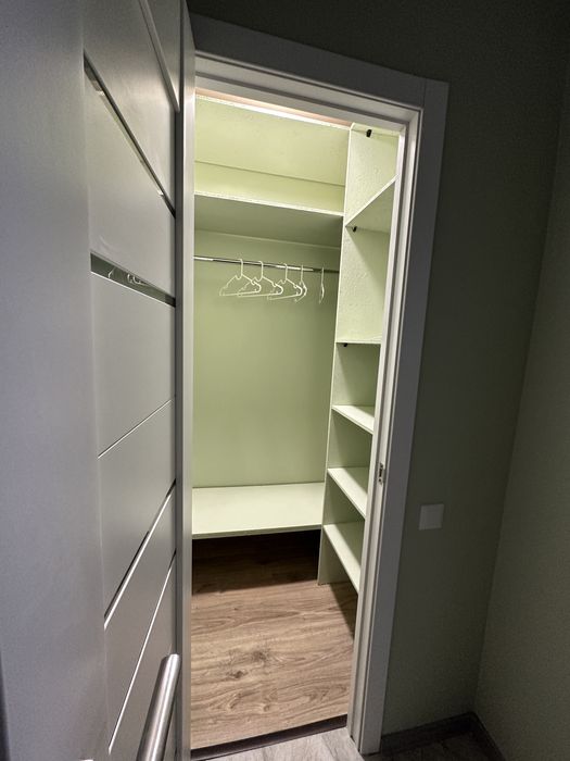 Коридор не заставлен, имеется вешалка для верхней одежды. В квартире есть гардеробная при входе и комод для ваших вещей.