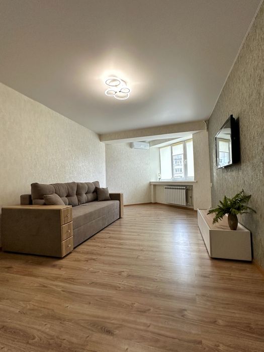 Идеальное состояние квартиры. Новая проводка, новая сантехника. Большая, просторная, светлая комната. Удобный раскладывающийся диван, телевизор, установлен кондиционер.