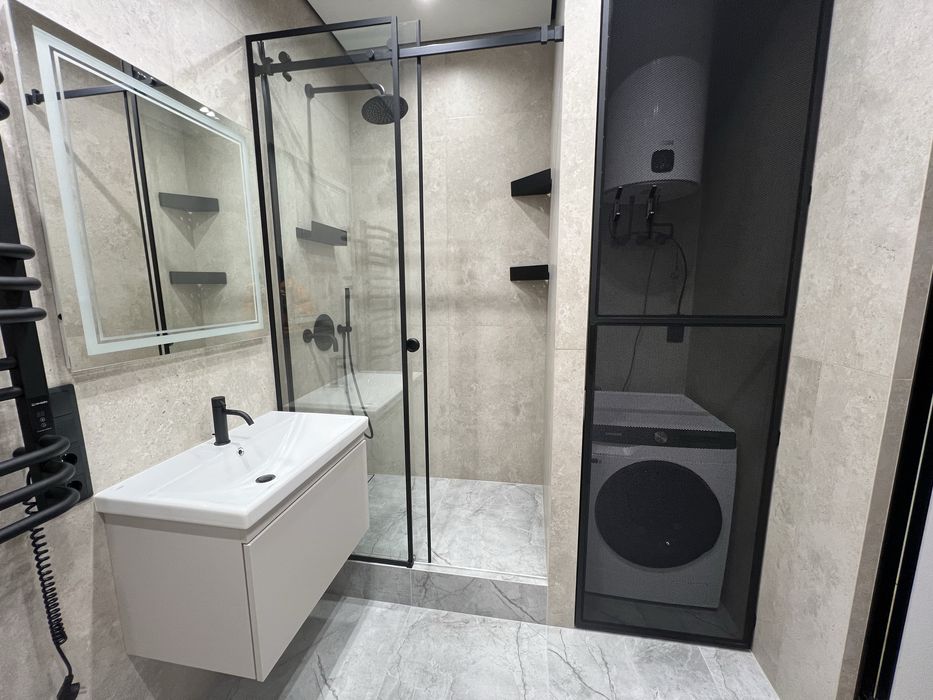 Є все необхідне: 2 великі Smart TV, 2 кондиціонери, бойлер, пральна/сушильна машина, індукційна варильна поверхня, духовка, холодильник з морозильною камерою, посудомийна машина, тепла підлога тощо.