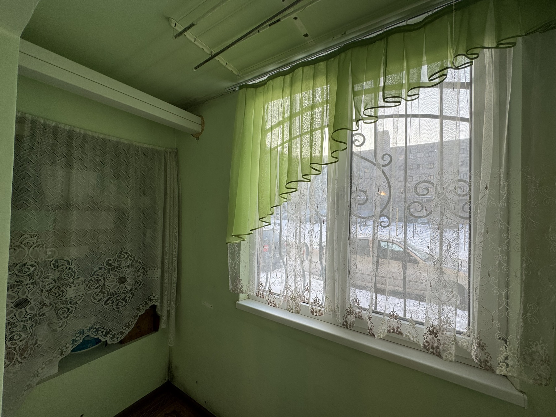 Балкон засклений, на вікнах — захисні металеві ґрати.