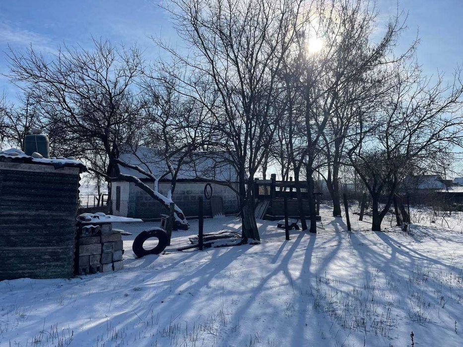 Во дворе дома есть огород, сад, беседка, туалет, сараи большие, гараж с ямой большой, колодец, район очень спокойный, рядом живут добрые соседи, рядом есть ставок, выезд до трассы, в доме есть интернет.
