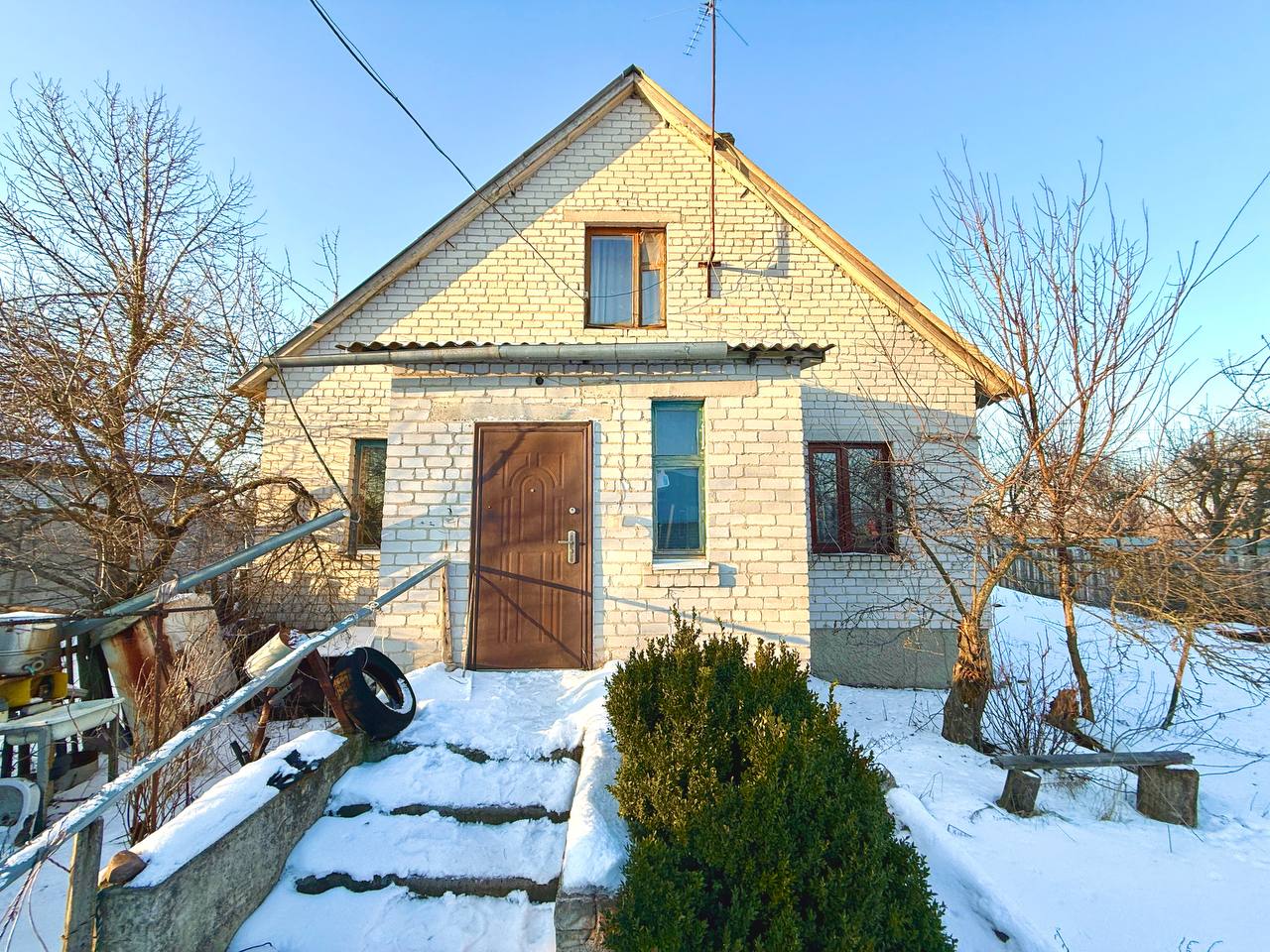 Будинок збудований у 1999 році для переселенців з Полісся. Двоповерховий, цегляний, із залізобетонними перекриттями, міцний і надійний. Загальна площа будинку — 120 м², житлова — 50 м². У будинку чотири спальні кімнати, також є веранда, яку за бажанням можна облаштувати під п’яту повноцінну кімнату. Опалення індивідуальне газове, котел можна переобладнати під твердопаливний. У деяких кімнатах встановлені конвектори для швидкого обігріву. Є газопостачання та електрика. Вода на території є, але наразі не заведена в будинок.