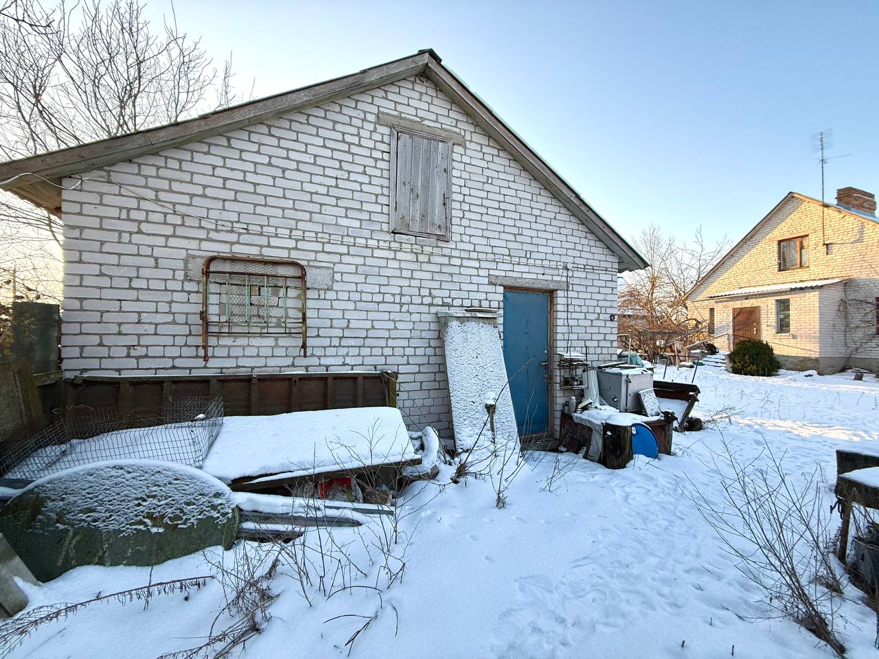 На ділянці розташовані господарські будівлі та вхідний погріб. Земельна ділянка площею 45 соток, з плодовими деревами та виноградником — достатньо місця і для саду, і для господарства.