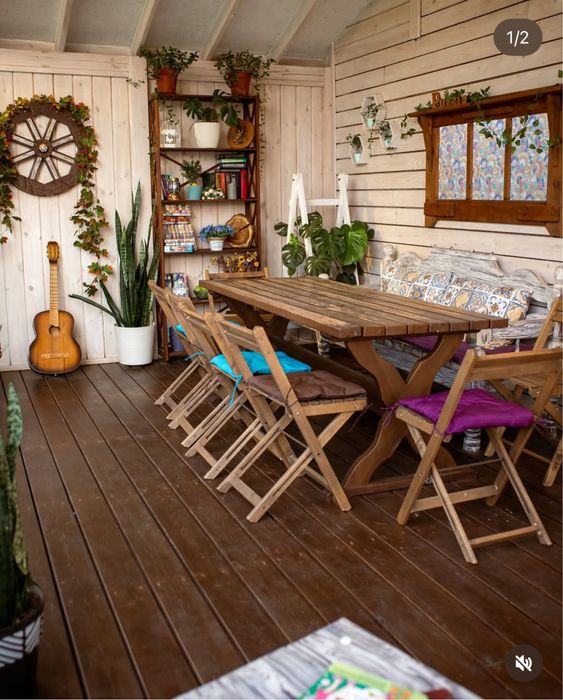 Дві стильні дерев'яні криті тераси — 32 м² та 24 м², чудові для відпочинку або заходів.