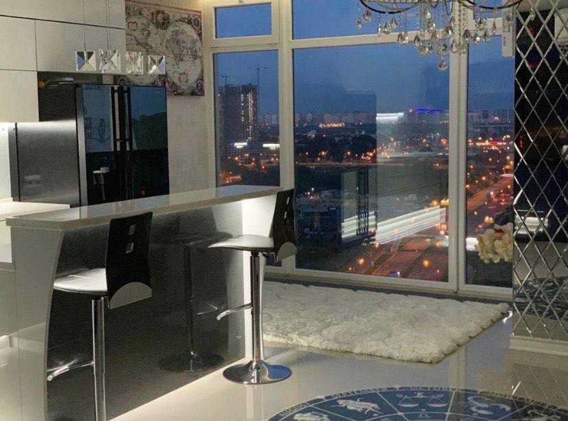 Здається шикарна простора квартира-студіо з панорамними вікнами в довгострокову оренду, в Голосіївському районі, вул. Саперно-Слобідська 24.
