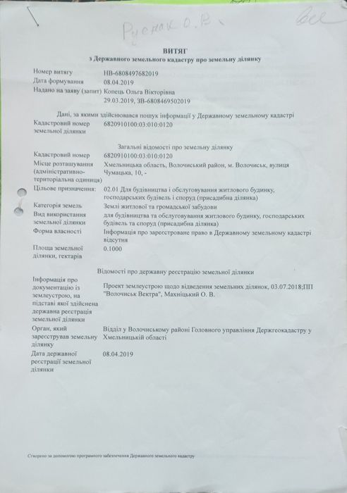 Продам земельну ділянку під будівництво; Продається земельна ділянка в м.Волочиськ на новому масиві площею 10 соток