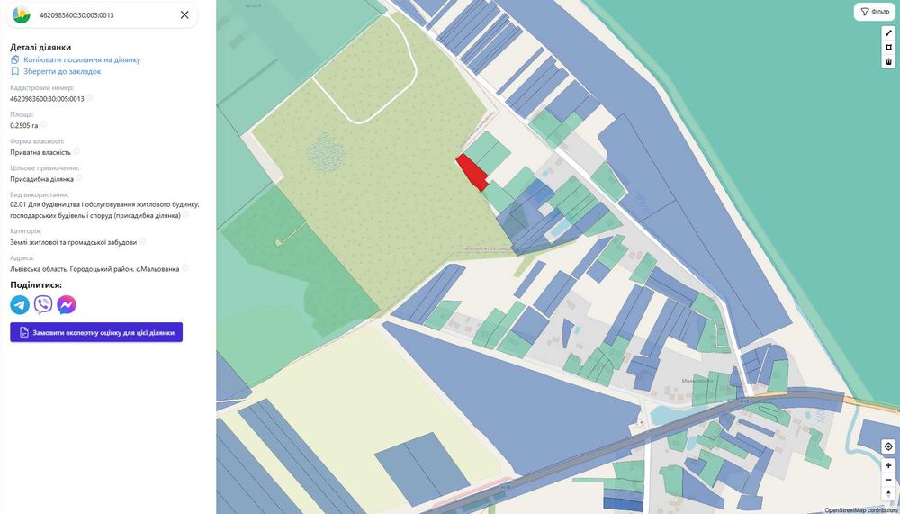Продаж земельної ділянки під забудову с.Мальованка - 0.25 га; Земельна ділянка Львівська область, Городоцький район, с.Мальованка