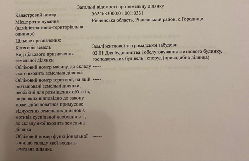 | Земельна ділянка: |