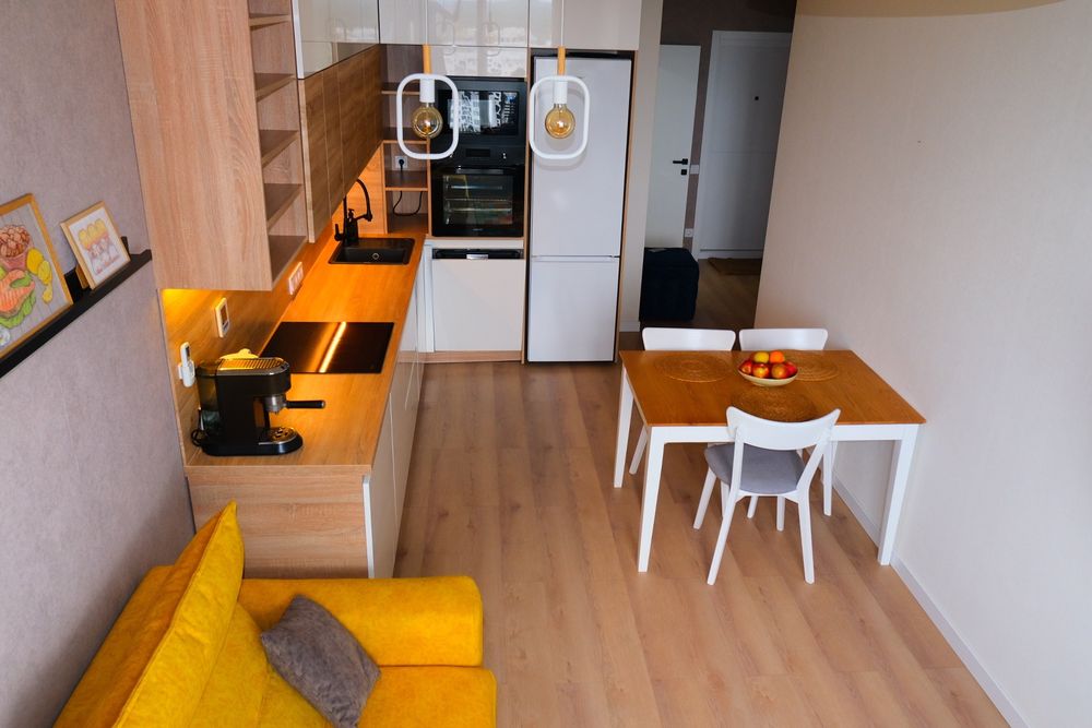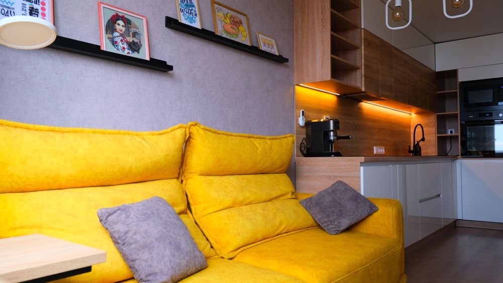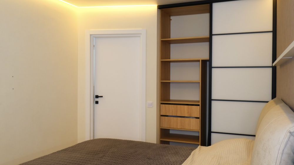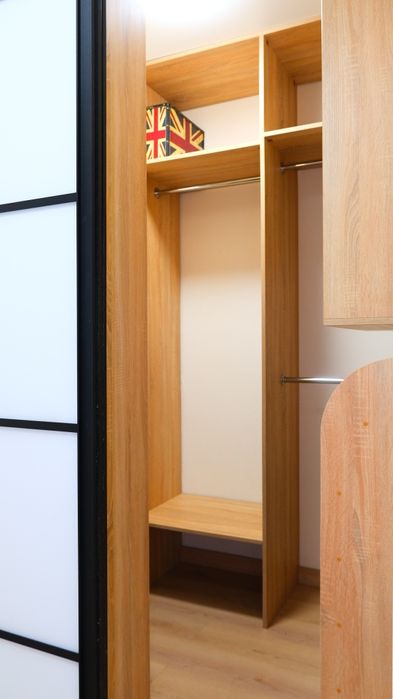 - Квартира обладнана гардеробною та вбудованими шафами для зберігання (спальня, ванна), додаткові місця зберігання - ніша під ліжком та розкладним диваном.