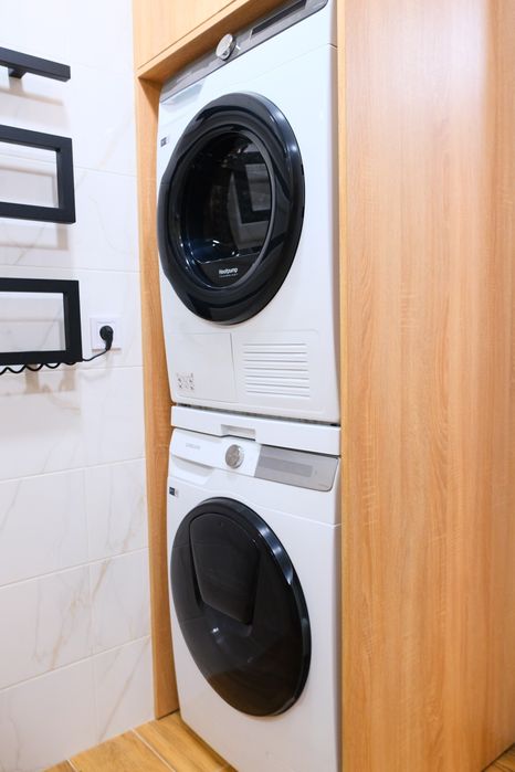 - 2 кондиціонери Samsung, пральна та сушильна машини Samsung, холодильник, плита, духова шафа та мікрохвильова піч, посудомийна машина Beko, бойлер Atlantic на 65л. Техніка Samsung управляється зі смартфона.