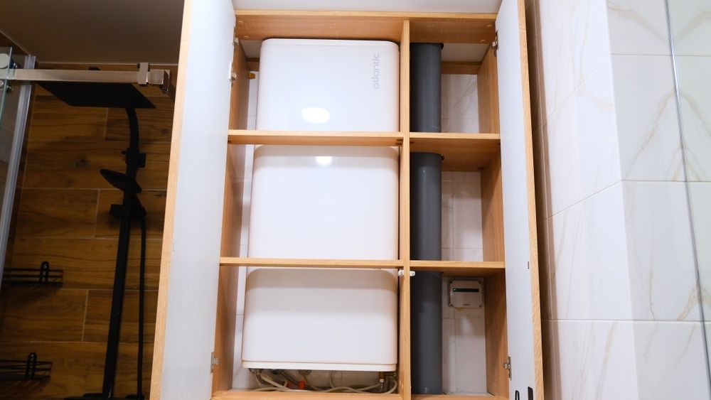 - Система фільтрації води: на вході в квартиру встановлено 2 фільтри грубого очищення; для питної води — система зворотного осмосу. У «мокрих зонах» встановлені аквастопи (санвузол і кухня).