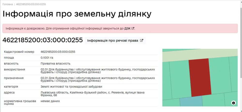 | Земельна ділянка: |