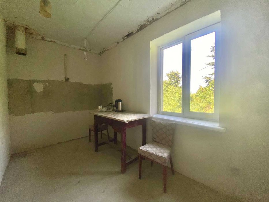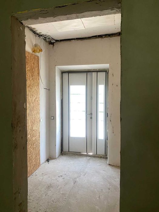 Вхідні двері броньовані, металопластикові вікна (кухня, столова, санвузол). В приміщеннях, що були реконструйовані, стіни підготовлені під чистове оздоблення