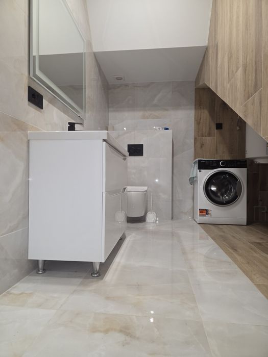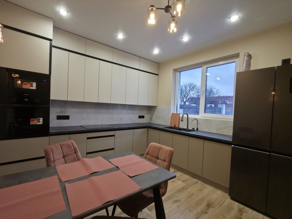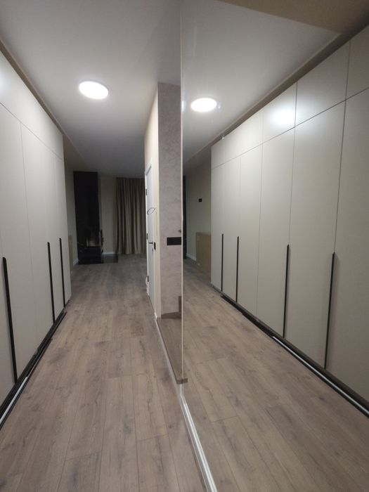 Продається новий 2-пов.котедж в Ужгороді з ремонтом; Продається в місті Ужгород новий, ще ніхто не жив, 2-пов.котедж 110 кв.м, з повністю готовим ремонтом, є залита бетоном тераса 30 кв.м, передній і задній двір з бруківкою. Центральне водопостачання і каналізація. Заходь і живи! Утеплені стіни, стелі, є просторе горище, тепла підлога на обох поверхах. У вітальні встановлено дорогий стильний камін на дровах, від нього розведено додаткове тепло в усі кімнати. Проведений інтернет, є сигналізація. Виведено мережі під три кондиціонери, в усі кімнати. В будинку дуже гарне планування: кухня окремо, велика вітальня з виходом на терасу, два санвузли, якісні дерев'яні сходи, спальня з гардеробною, кабінет або дитяча. Зроблений стильний ремонт у теплих тонах. Кухня, вхід до якої оформлений розсувними дверима з темного скла, повністю обладнана новою технікою: 4-дверний холодильник, посудомийка, індукційна плита останньої моделі з духовкою, мікрохвильова піч. У санвузлі пральна машина, електричний котел, бойлер, фільтри. У вітальні великий кутовий диван, 2 журнальні столики, килим 2×3, телевізор 65 Samsung. У прихожій 4 великих, під стелю, шафи для зберігання речей, плюс шафа-вішалка. У батьківській спальні простора гардеробна, де є місце для дзеркала і туалетного столика. Вмебльовані санвузли. Сучасні світильники. В цьому будинку багато повітря: високі стелі 2,7м, великі кімнати, - все для комфортного проживання. Розміри приміщень такі. 1 поверх: Вітальня 25, 2 кв м, кухня 11 кв м, прихожа 9,9 кв.м, санвузол 5,5 кв.м. тераса 25,8 кв.м. 2 поверх: спальня 19,6 кв.м, гардеробна 6 кв.м, дитяча або кабінет 19 кв.м, санвузол 4,2 кв.м. Плюс сходова частина, з декоративною штукатуркою.