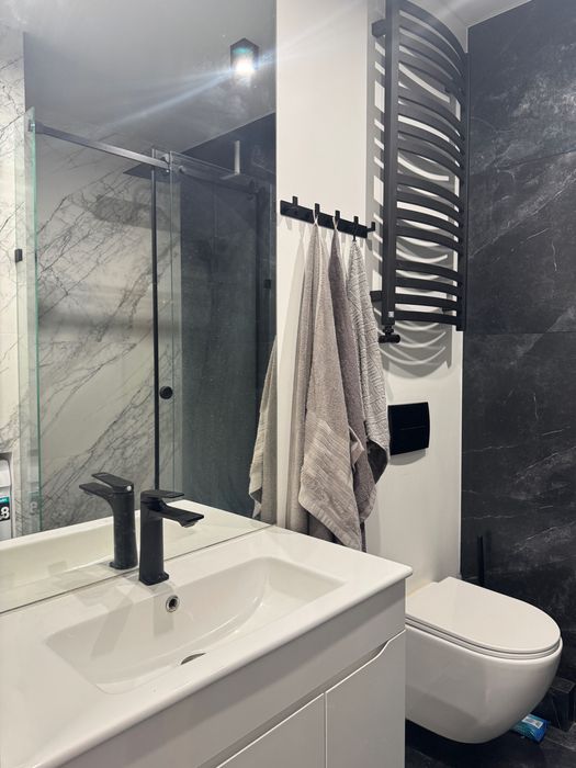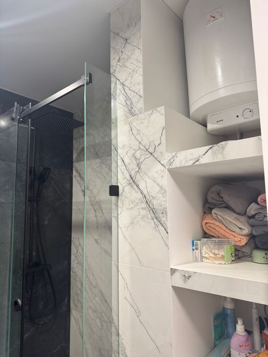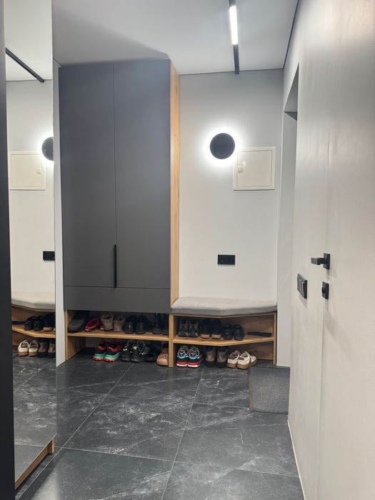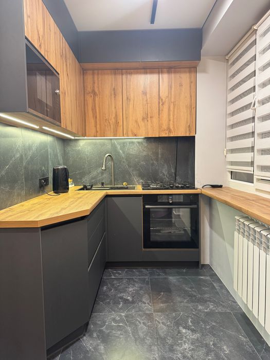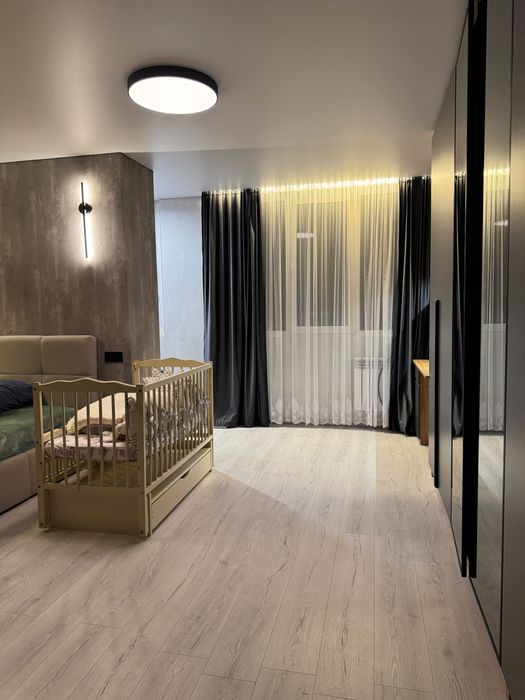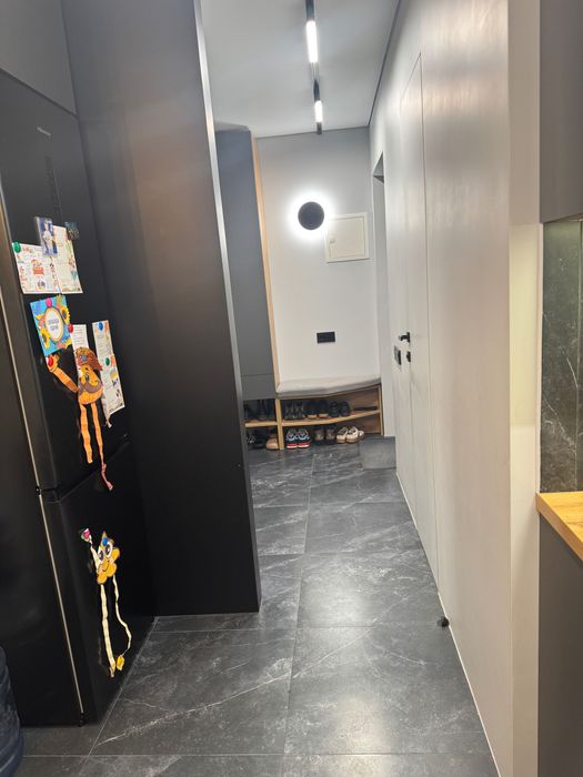 В квартирі рік назад був зроблений дорогий дизайнерський ремонт з нуля. Залита стяжка, по штукатурено, проведена електрика, в квартирі є щитова з автоматами і реле напруги, багато розеток, проведений WiFi від UAinet. Стоять нові якісні вікна і двері. Є центральне опалення, встановлена електрична тепла підлога в ванні і кухні, інверторний кондиціонер на тепло і холод, все працює від терморегулятора на WiFi. Лічильники на елекртику, газ, воду.