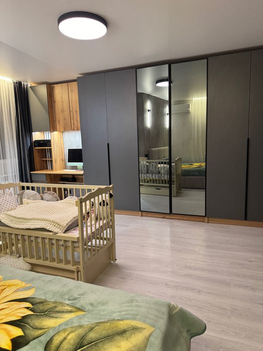 Квартира продається з новою якісною технікою: пральна машина, бойлер на 50л, холодильник, духовка, газова поверхня, витяжка, мікрохвильовка, кондиціонер. В квартирі багато меблів, всі до стелі, ліжко з нішою і підйомним механізмом.