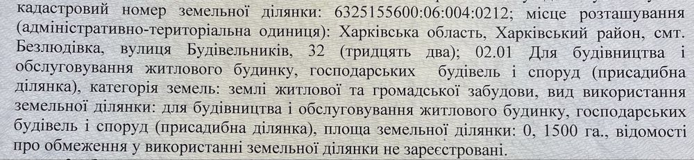 | Земельна ділянка: |