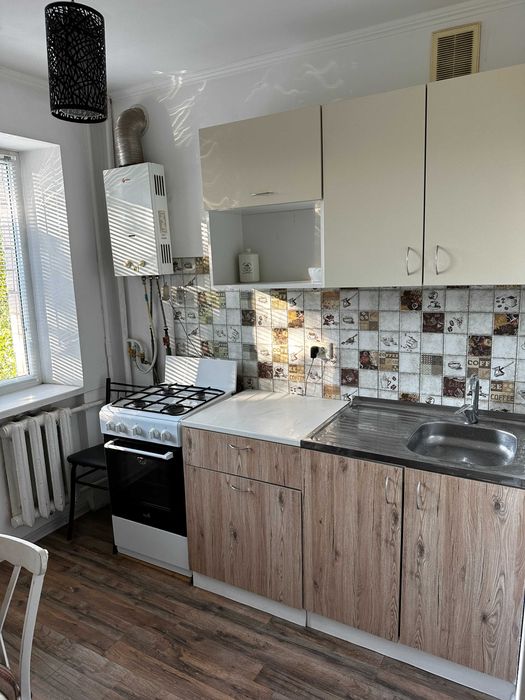 Є холодильник, мікрохвильова піч, стіралка, меблі, газова колонка, пилосос.