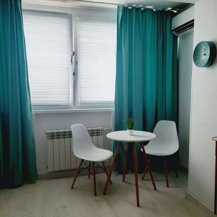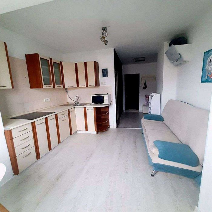 Кухня-студія: оснащена кондиціонером, індукційною плитою, мікрохвильовою піччю, витяжкою, великим холодильником, посудом та розкладним диваном.