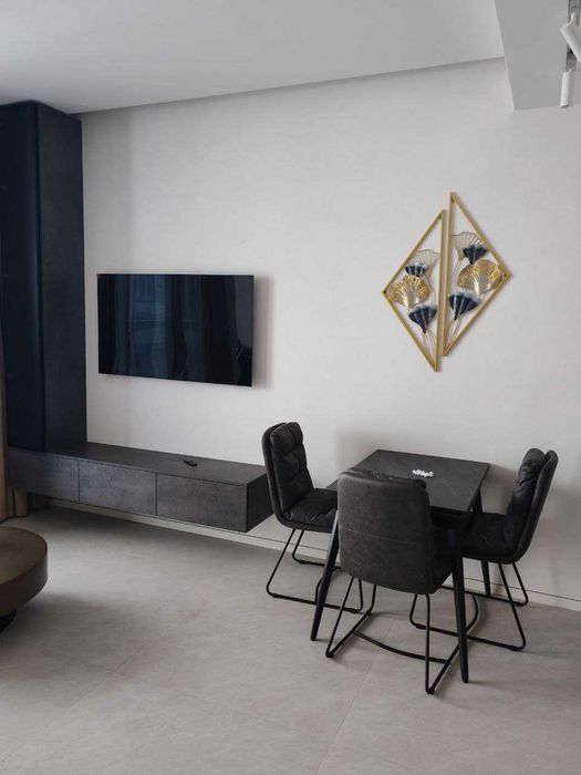 Сучасна телевізійна панель 55' (2025р), індукційна варильна поверхня, духовка, мікрохвильова, пральна машина з сушкою, високі двері прихованого монтажу, ліжко із регульованим узголів'ям і т.п.