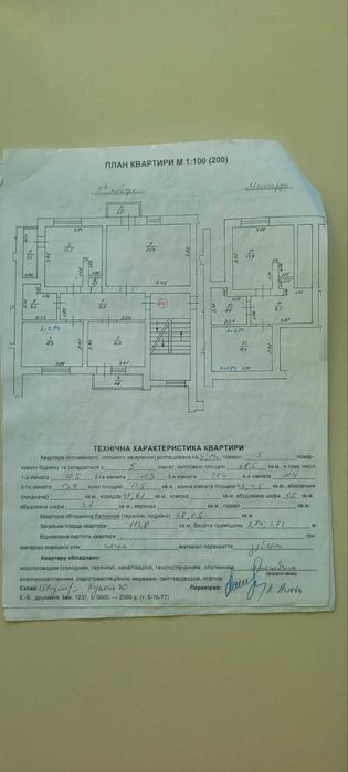 Дворівнева квартира на пятому поверсі у Винниках по вул. Кільцева 11; По технічному паспорту загальна площа складає 113.80м.кв. та зазначається як п’ятикімнатна, з яких житлова площа складає – 66.45м.кв, а висота стелі становить – 2.75м. Фактична житлова площа квартири, після незначного перепланування, складає – 56.25м.кв. та є чотирикімнатною.