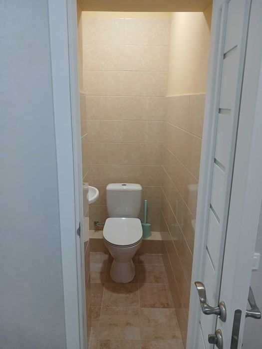 5) Санвузол 2(гостьовий): загальна площа – 1.25м.кв.; висота стелі – 2.55м.(підвісна); основне освітлення – стельовий світильник; встановлено: рукомийник(облаштований); унітаз; примусова витяжка; підлогова та настінна плитка + самоклеючі 3д панелі;