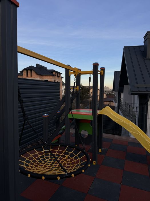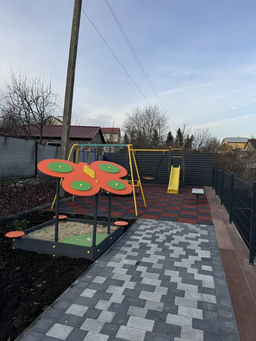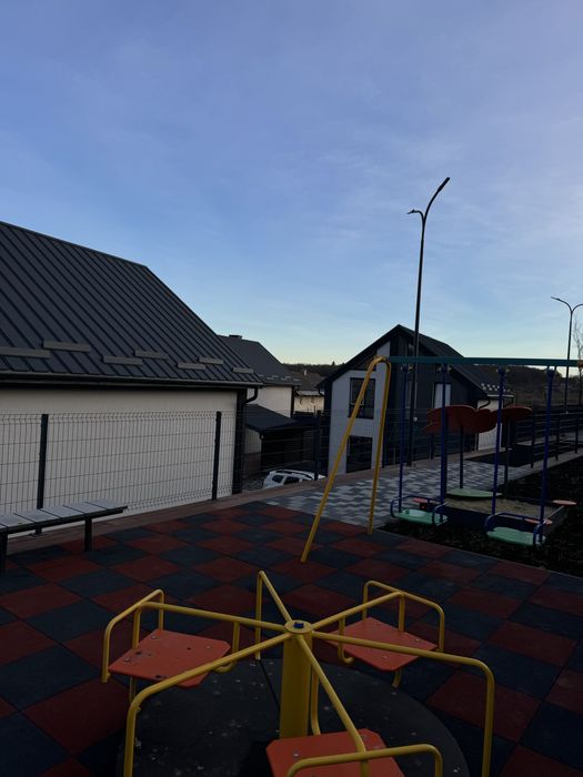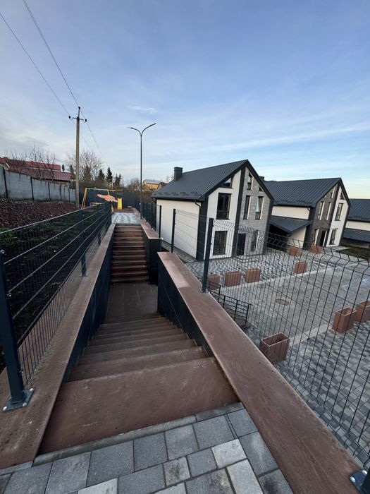 Територія закрита огороджена парканом, ведеться відеоспостереження, вимощена бруківкою, є зона барбекю з бесідкою та дитячий майданчик. Для автомобілів передбачений навіс, кожний будинок з окремою ділянкою, всі комунікації підключені до будинку (газ,світло, вода) всі котеджі утеплені,детально дзвоніть, оглянути можна в будь який час