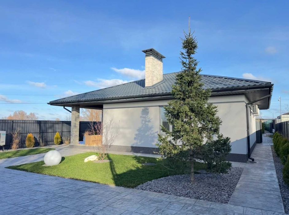 Загальна площа будинку — 90 м², житлова — 80 м². Земельна ділянка 4 сотки, передбачене паркування на два автомобілі. Встановлені автоматичні ворота з пультом керування. Будинок одноповерховий, з продуманим і зручним плануванням: дві спальні, два санвузли, гардеробна, кухня-студія, котельня та передбанник. Висота стель — 3,10 м, що створює відчуття простору та світла. Будинок під чистове оздоблення.