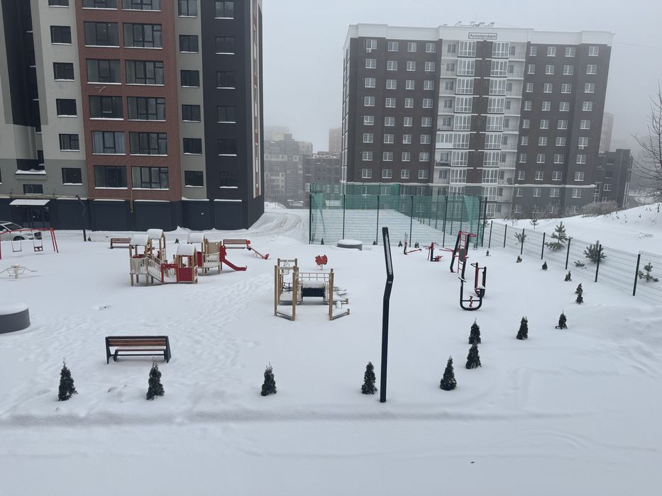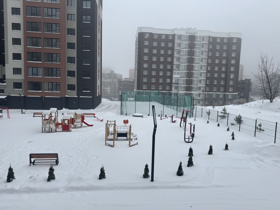 Чудовий вигляд з вікна на дитячу прощадку та стадіон (видно на фото).