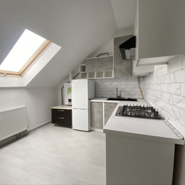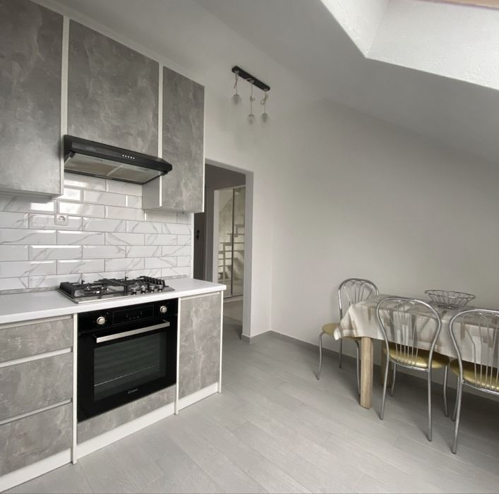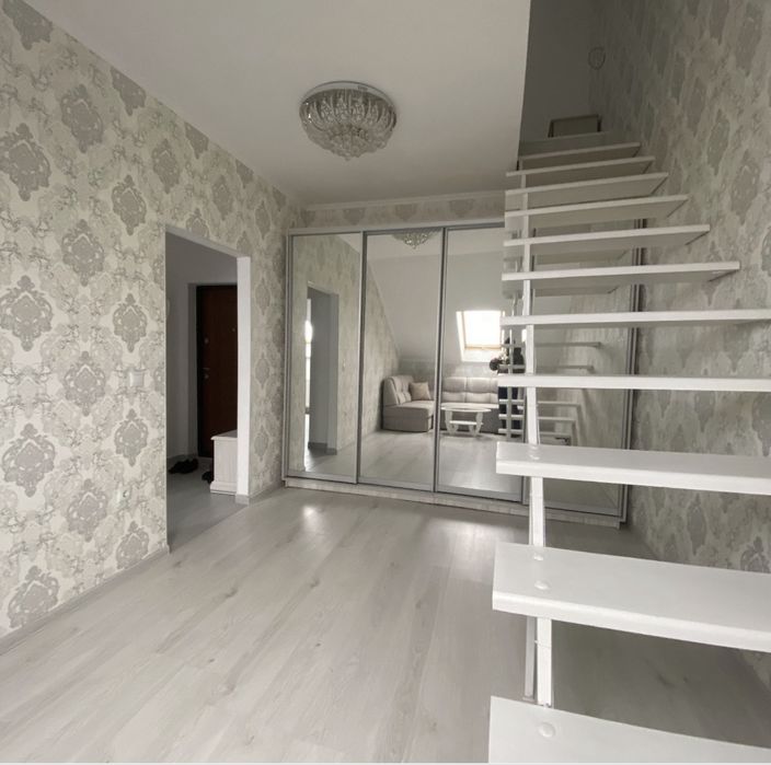 Квартира дворівнева на першому поверсі кімната кухня та санвузол, на другому простора спальня та санвузол. Загальна площа 60м повністю укомплектована.