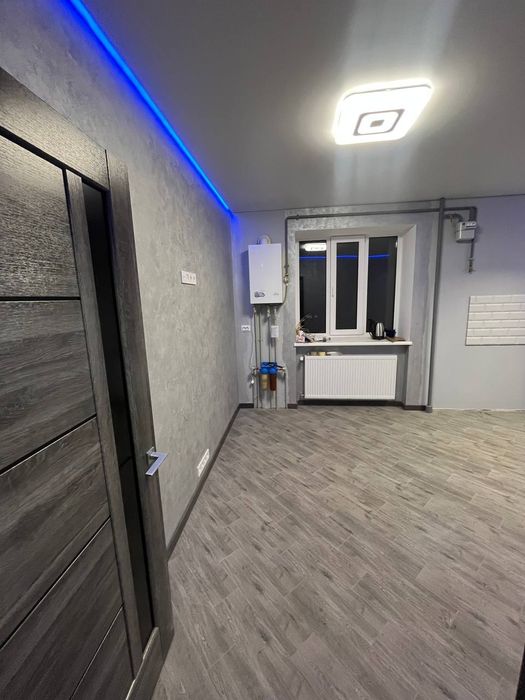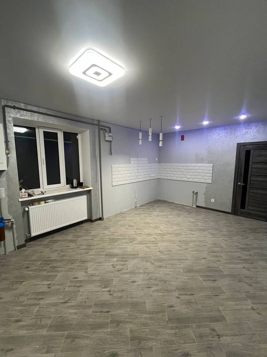 Продається нова однокімнатна квартира; Продається велика однокімнатна нова утеплена квартира. Загальна площа 55 м², кімната 19 м², кухня 20 м² з кухні є кладовка 3 м², великий просторий коридор, сумісний санвузол 7 м²