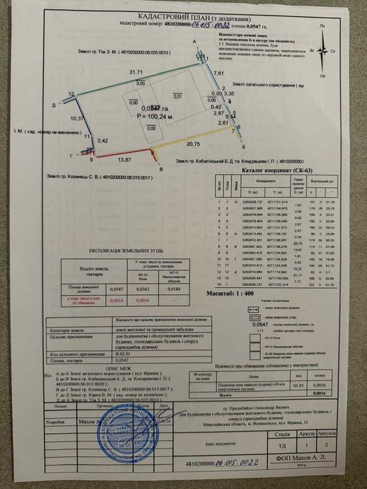 | Земельна ділянка: |