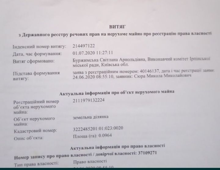 | Земельна ділянка: |