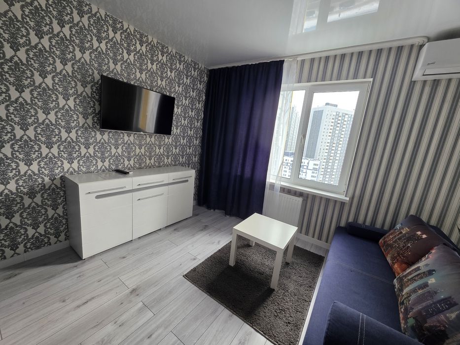 Дарницький; Оренда квартири Позняки, Вишняківська 4; Квартира-студія із суміжним санвузлом. Зроблено євроремонт. Сучасний ЖК. 10 хвилин пішки до метро «Харківська» (900 метрів).