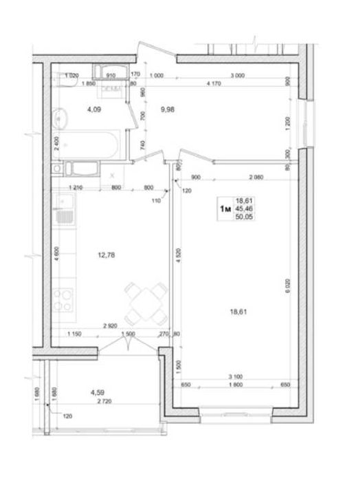 Ідеальне Планування: Площа 50 м² дозволяє легко перепланувати простір у повноцінну 2-кімнатну квартиру.