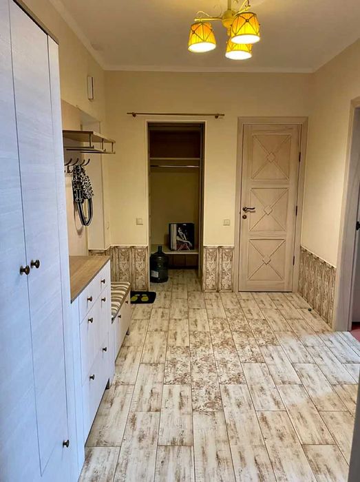 В кімнаті є велика шафа для одягу, ліжко з ортопедичним матрацом та шухлядами для зберігання речей, столик для макіяжу. В дитячій кімнаті (або кабінеті) є розкладний диван, 2 крісла та журнальний столик, письмовий стіл, шафи для книг та речей. В кухні є холодильник, посудомийна, духова шафа, варильна поверхня, витяжка. Є великий засклений балкон. Окрема гардеробна кімната з поличками, де можна розмістити всі речі. В санвузлі є ванна, бойлер і невелика шафа для зберігання побутової хімії.