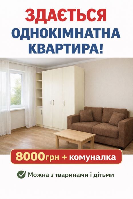 8000 грн + комунальні послуги