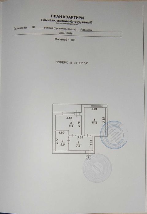 Загальна площа 35.6 м². 3-й поверх в 4х поверховому будинку — золота середина, комфортно і незалежно від ліфта.