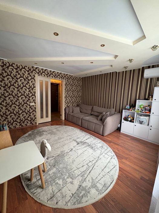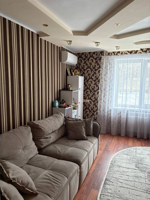 Покриття: кухня, коридор – лінолеум, вітальня – ламінат, спальня – ковролін; - натяжні стелі + гіпсокартон; - всі стіни якісно заштукатурені.