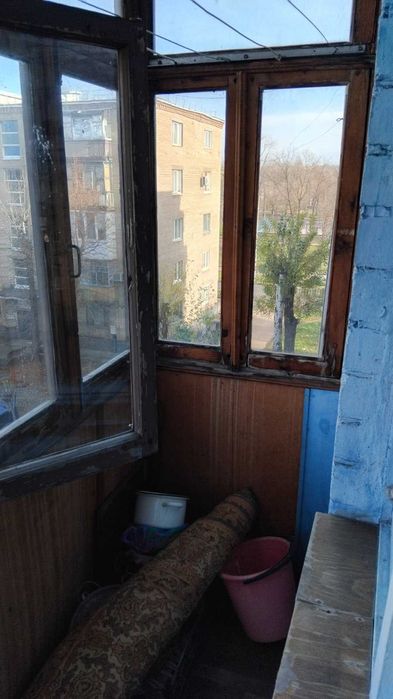 Балкон застеклен (рамы деревянные).