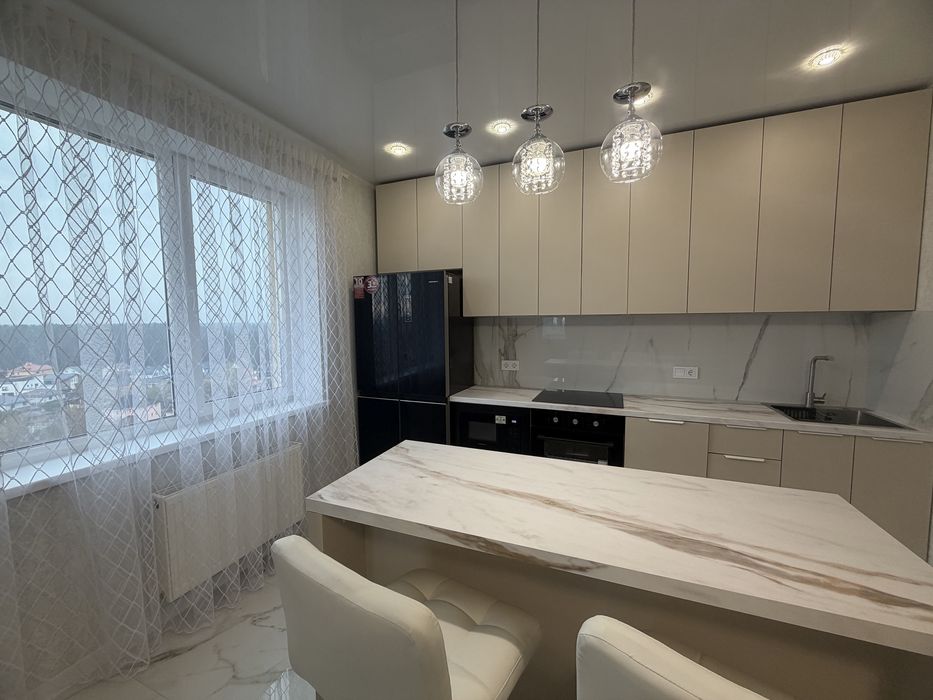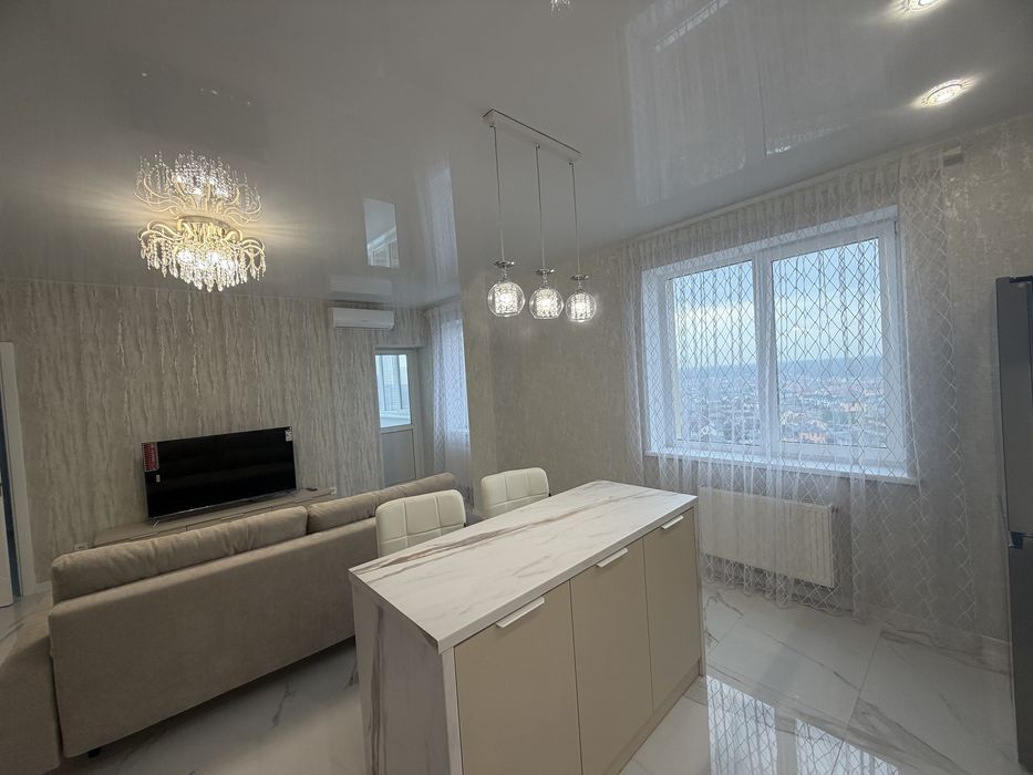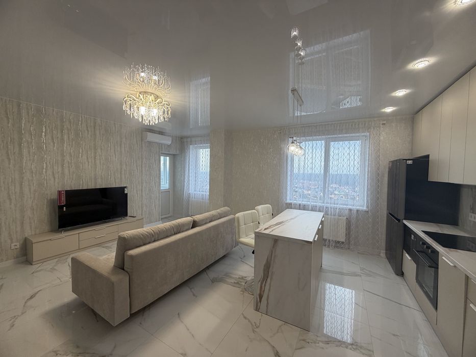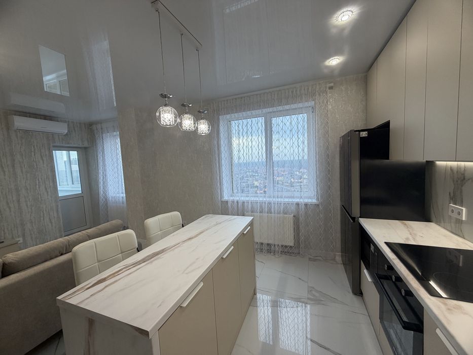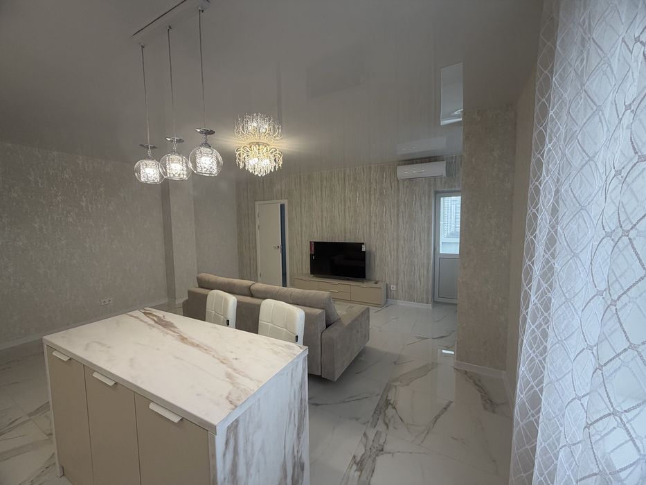 Ремонт дорогий та якісний , все робилось для себе . Планування : кухня - вітальня з виходом на балкон , окрема обідня зона-острів , новий розкладний диван , плазмовий ТВ ; Два кондиціонери ; окрема велика кімната гардеробна з дзеркальними дверима ; просторий сан вузол з ванною , бойлер 100 л , пральна машина , сенсорне дзеркало , сушка для білизни ; спальня з новим ліжком та великою шафою - купе . Квартира готова до миттєвого заселення .
