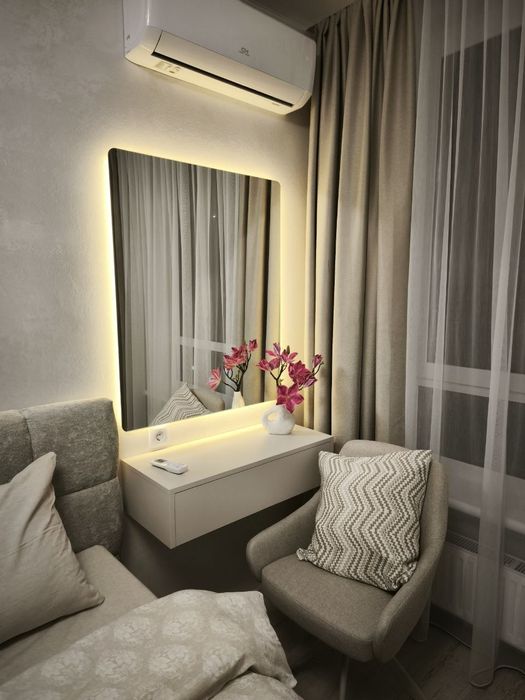 Кімната №1: Ліжко 200*160 з ортопедичним матрацом, шафа для речей, Телевізор Samsung, кондиціонер, точкове освітлення + різні підсвітки.