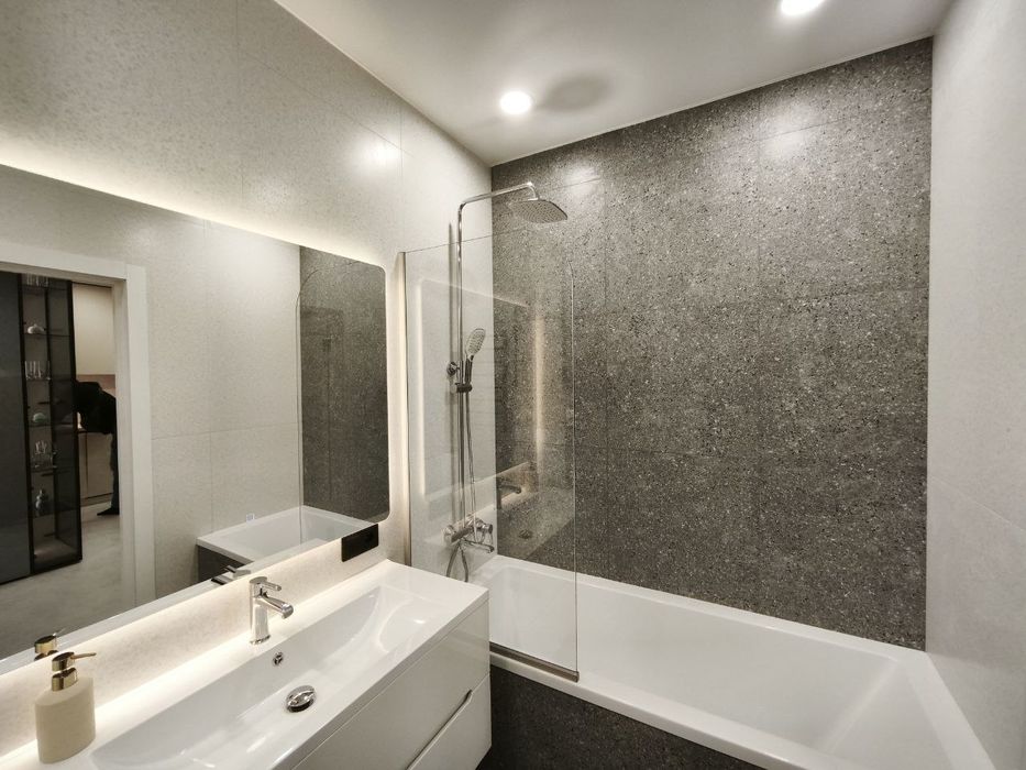 Освітлення: більш 500 метрів проводу, багато розеток/вимикачів. Все продумано. Тіньовий карниз. Підсвітку ванни та дзеркала. Люстри ( можна змінювати світло з білого на тепле). Багато точкових світильників та додаткового світла.