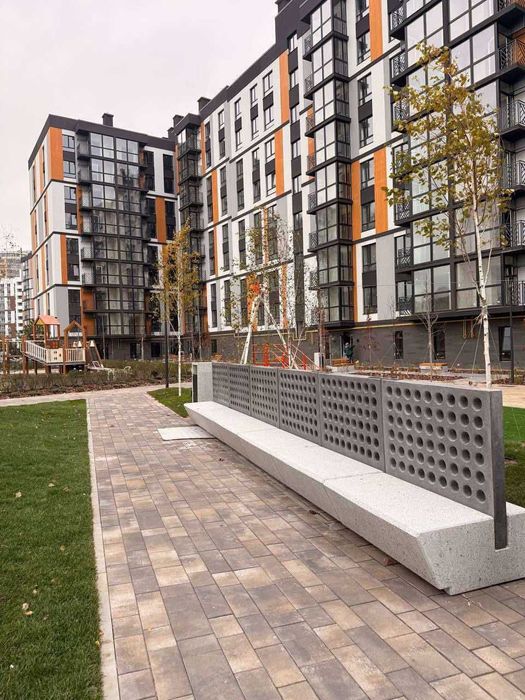 Продумане планування, дві окремі кімнати, велика кухня з панорамними вікнами, два санвузли, вікна виходять у двір. У дворі ландшафтний дизайн, ігрові майданчики, гойдалки, місця відпочинку.