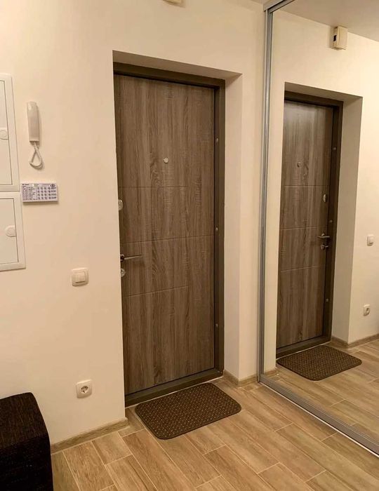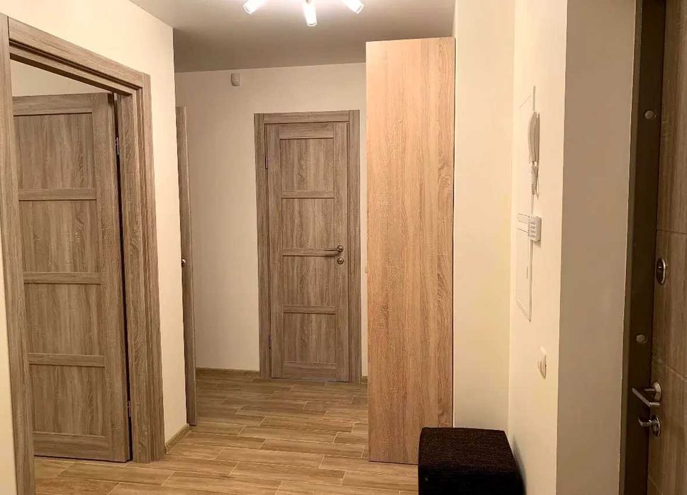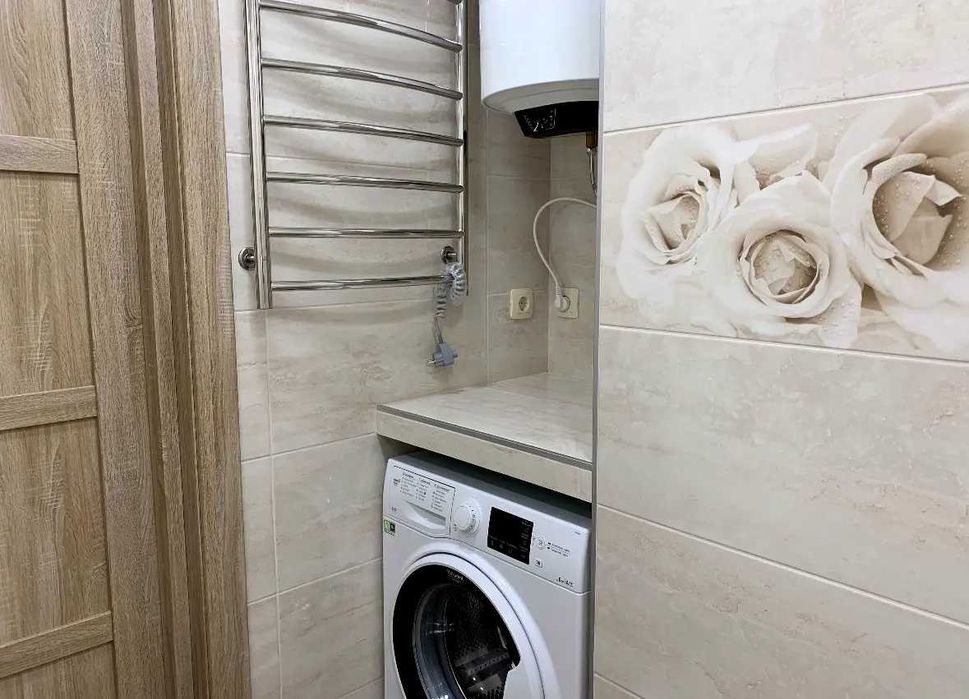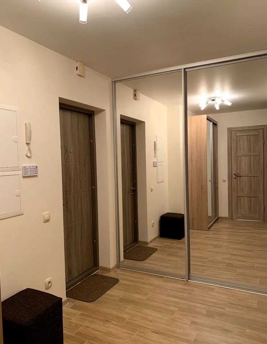 Вбудована кухня, вся побутова техніка, холодильник, електроплита, духовка, витяжка, обідній стіл, стільці, тепла підлога. Smart TV, кондиціонер, дві шафи купе, письмовий стіл, пральна машина, бойлер на 80 л. Усі лічильники (ГВ, ХВ, тепло, світло), пультова охорона.